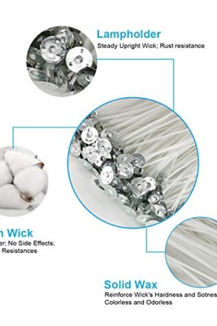 Candle Wicks 100 Pcs 6 inch with 30Pcs Candle Wick Stickers and 10 Pcs Wooden Candle Wick Centering Device for Soy Beeswax Candle Making and Candle DIY
