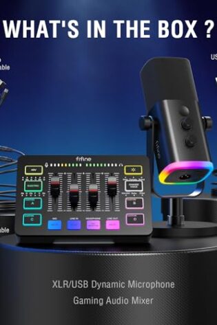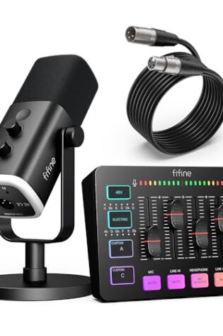 FIFINE XLR/USB Dynamic Microphone for Podcast Recording, PC Computer Gaming Streaming Mic with RGB Light, Mute Button, Headphones Jack, Desktop Stand, Vocal Mic for Singing YouTube-AmpliGame AM8
