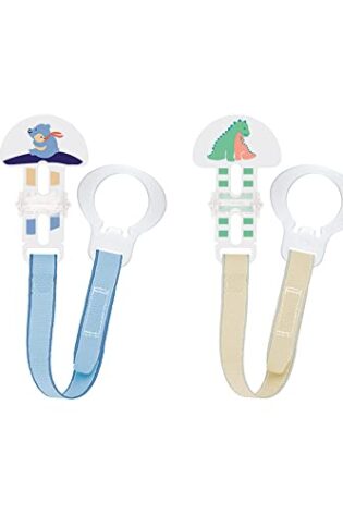 MAM 2 Clips for Pacifiers With Fasteners and Flexible Rings for Boys, Designs May Vary