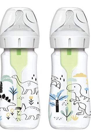 Dr. Brown’s Natural Flow® Anti-Colic Options+™ Wide-Neck Baby Bottle Designer Edition Bottles, Dino Decos, 9oz/270mL, Level 1 Nipple, 2-Pack, 0m+