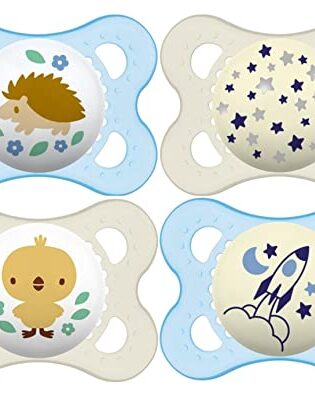 MAM Original Day & Night Baby Pacifier, Nipple Shape Helps Promote Healthy Oral Development, Glows in The Dark, 0-6 Months, Baby Boy, 4 Count