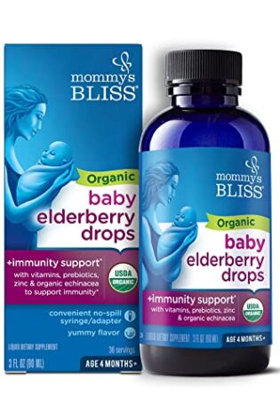 Mommy’s Bliss Organic Baby Elderberry Drops, Immune Support with Vitamins, Prebiotics, Zinc & Organic Echinacea, Age 4 Months +, 3 Fl Oz (36 Servings)