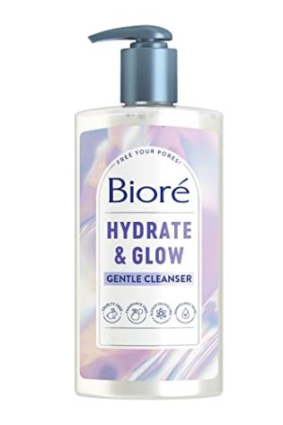 Biore Hydrate & Glow Gentle Face Wash for Dry Skin, Sensitive Skin, Dermatologist Tested, Fragrance Free, SLS/SLES Sulfate Free Facial Cleanser, Cruelty Free & Vegan Friendly 6.77 Oz Bottle