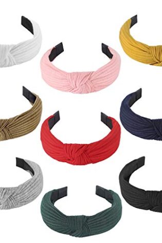 Funtopia Knotted Headbands for Women Girls, 9 Pcs Wide Plain Turban Headband Fashion Cross Knot Hair Bands with Solid Colors
