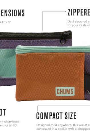 Chums Surfshorts Wallet – Lightweight Zippered Minimalist Wallet with Clear ID Window – Water Resistant with Key Ring (Black/Blue),One-size,18401127