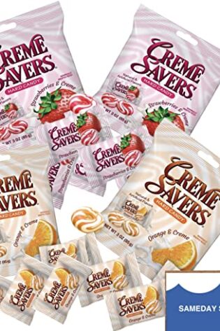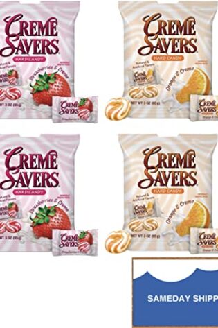 CREME SAVERS | Classic Original Individally Wrapped, Strawberries and Creme and Orange and Creme Hard Candy | 4 – PACK Variety & Sameday Shippers Card|