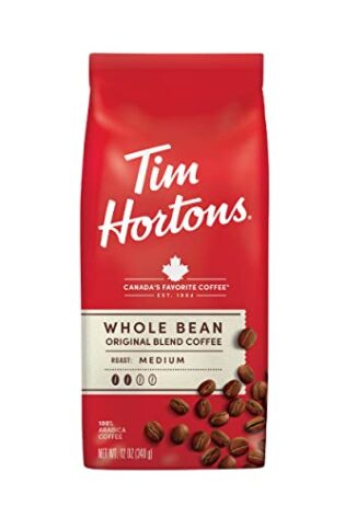 Tim Hortons Whole Bean Original, Medium Roast Coffee, Made with 100% Arabica Beans, 12 Ounce Bag