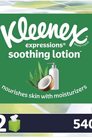 Kleenex Expressions Soothing Lotion Facial Tissues with Coconut Oil, Aloe & Vitamin E, 12 Boxes, 45 Tissues per Box, 3-Ply (540 Total Tissues)