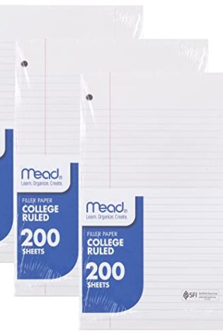 Mead Loose Leaf Paper, 3 Pack, Notebook Paper, College Ruled Filler Paper, Standard, 8 x 10.5, 200 Sheets per Pack (73185) Pack of 3