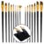 - 15 Piece Long Handle Artist Taklon Brush set for acrylic, watercolor, gouache, plein air & face painting